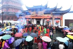 3月12日,在细雨霏霏的春雨中,嘉泽首届花朝节及花木文化民俗庙会在花神宫门前广场举行。...